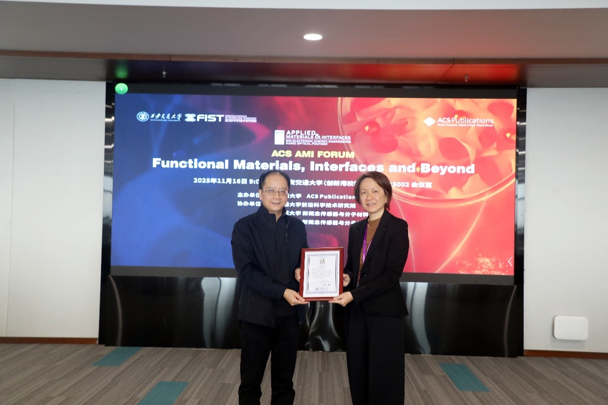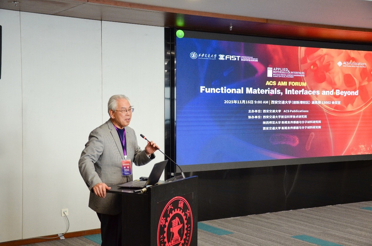 11月16日,美国化学会期刊应用材料与表界面论坛(ACS Applied Materials & Interfaces)在创新港校区举办。本届论坛由西安交通大学和美国化学会出版部(ACS Publications)联合主办,西安交通大学前沿科学技术研究院、陕西师范大学新概念传感器与分子材料研究院、西安交通大学新概念传感器与分子材料研究院共同协办。论坛共同主席由西安交通大学房喻院士与ACS Applied Materials & Interfaces期刊主编林歆怡教授担任。本次论坛以“Functional Materials, Interfaces and Beyond”为主题,旨在通过跨学科学者的深度对话,共同推进功能材料与表界面科学迈向高性能、多功能与实用化的新阶段。西安交通大学副校长柴渭出席论坛,来自西北地区的70余位资深专家及青年才俊参加论坛,同时线上报名渠道的开放也吸引了全国多地学者踊跃参与。