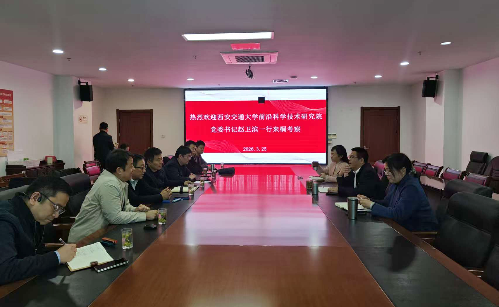 为深化产教融合、推动科研成果转化,搭建高校与地方协同发展桥梁,3月25日,前沿院考察团赴杭州市桐庐县就建立产教融合研究院、成立创投基金相关事宜开展深度交流。考察团由前沿院党委书记赵卫滨带队,成员包括前沿院副院长何刚教授、先进电子研究中心主任娄晓杰教授、前沿能源研究中心张旭日博士,前沿院校友会会长徐涛,西交一八九六(西安)控股集团有限公司投委会成员任宝明、董事长魏长青,西交1896孵化器负责人王建等。