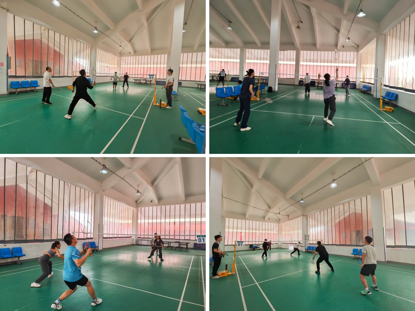 比赛分小组循环和决赛两个阶段进行。第一阶段,各参赛队伍抽签分为两个小组,展开单循环淘汰对决。场上,平日里严谨治学的教授、忙碌于行政管理的老师纷纷化身“羽坛健将”,高远球、扣杀、吊球、网前截击……一招一式有板有眼。场边,队友和观众的助威声、喝彩声此起彼伏,将比赛推向一个又一个高潮。