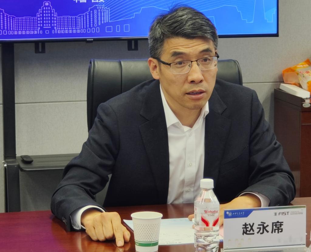 赵永席代表前沿院对李振洪副校长一行表示热烈欢迎。他重点介绍学院在师资队伍建设、科学研究、人才培养、体制机制创新等方面的特色做法与经验,分享了任职以来牵头实施的学术繁荣计划及建设成效。他指出,前沿院自 2010 年成立以来,坚持基础研究引领与交叉学科特色,虽建院时间不长、规模精干,但人才密度高,高层次人才队伍不断壮大,近五年人才规模实现翻番,年均增速15.9%。科研创新动能强劲,在《自然》《科学》等国际顶刊发表多篇高水平论文,并获国家自然科学二等奖等重要奖项,在多个交叉前沿领域形成特色突破。此外,学院着力强化内生发展能力,科研成果转化工作取得积极进展。